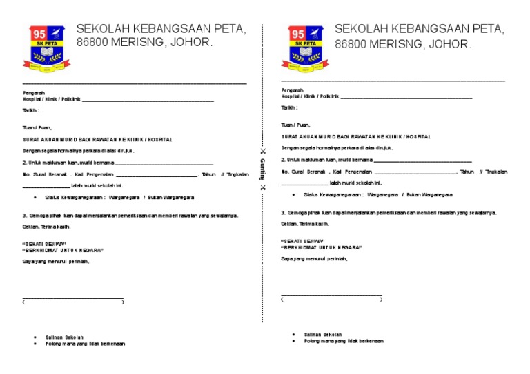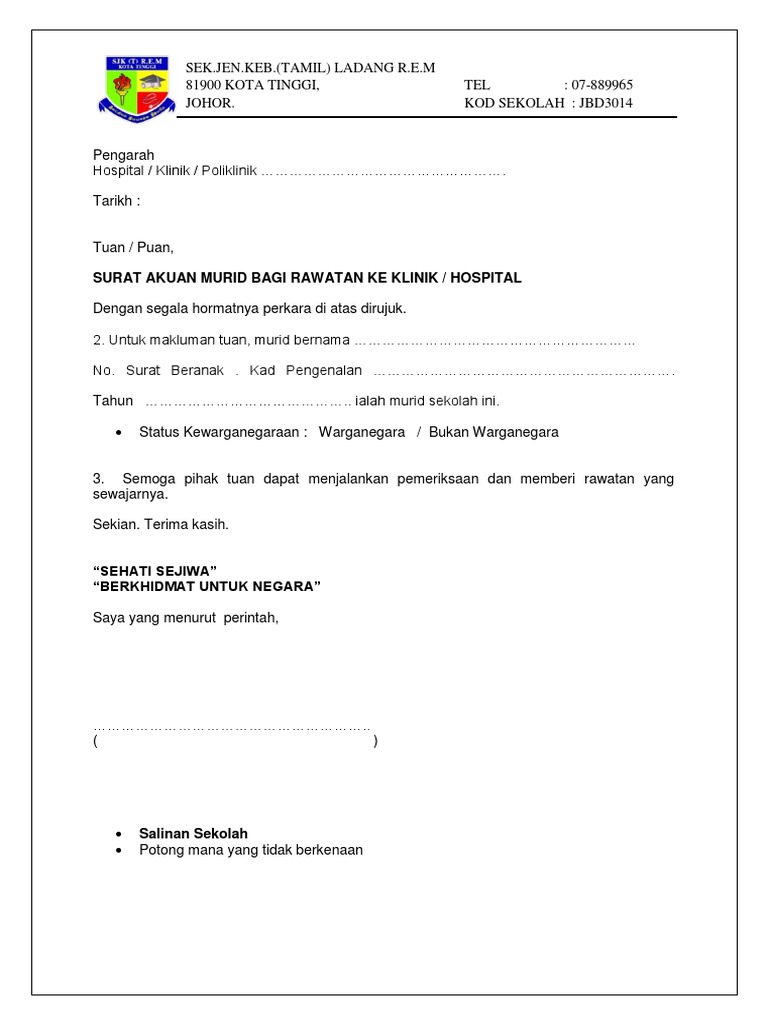 Surat rasmi epf surat rasmi u. Maklumat kesihatan tandakan di dalam ruang yang berkenaan jika murid ini pernah atau sedang menghadapi masalah kesihatan berikut. Jika hasil pemeriksaan dokter menganjurkan untuk perawatan intensif atau istirahat selama beberapa hari. Contoh surat pengesahan pelajar sekolah. Dah minta surat … contoh surat akuan terima wang.